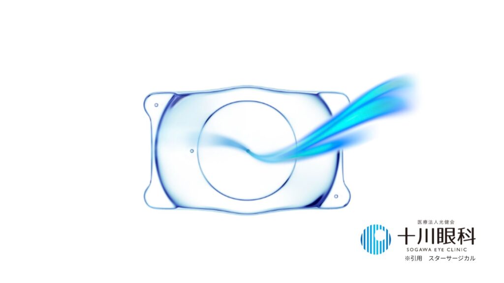 レンズ(STAAR Surgical社製)は生体適合性が高く、柔らかい素材でできているため、割れるなどの心配もありません。ただし、トーリックレンズ(乱視用のレンズ)の場合、強い衝撃が加わると目の中でレンズが回旋し、乱視の軸がズレてしまう場合があります。このようなケースでは、再手術によりレンズの位置修正を行うことが可能です。